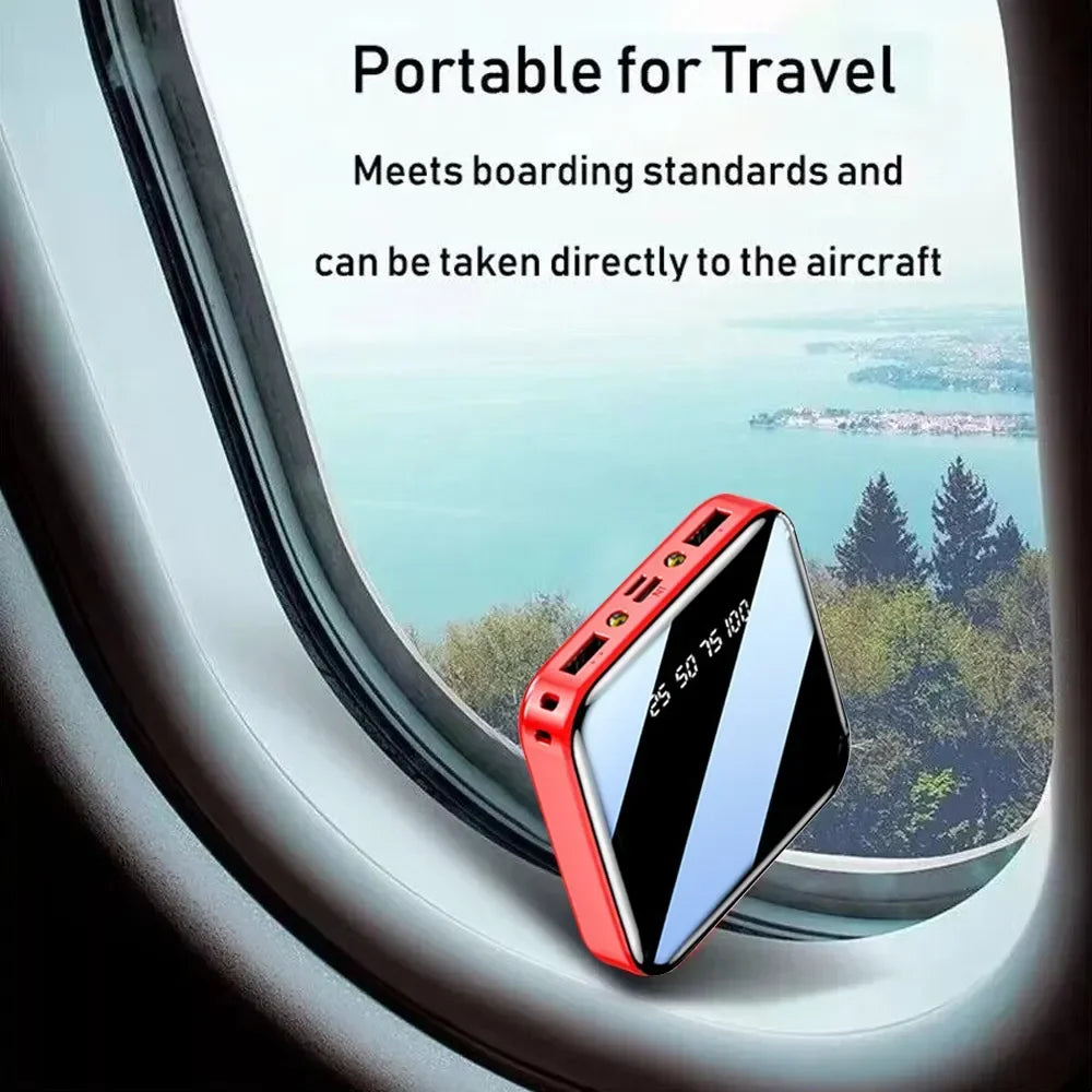 ξAO 200000 mAh Mini Power Bank – Tragbares Ladegerät mit LED-Digitalanzeige, Spiegel-Design, Schnellladung für iPhone, Xiaomi, Huawei