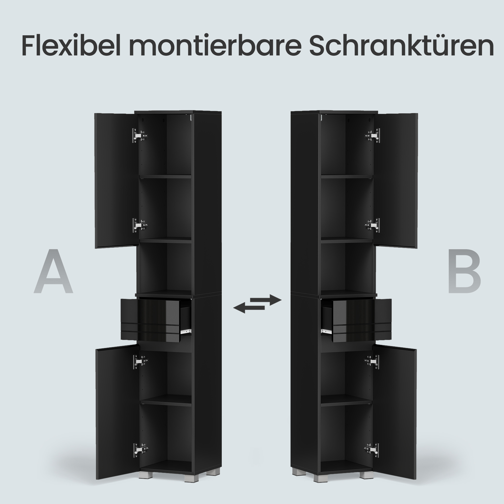 Dieses schmale Badezimmermöbel mit den Maßen 30×30×170 cm bietet eine elegante Lösung für platzsparende Aufbewahrung. Ausgestattet mit einer praktischen Schublade, verstellbaren Regalen und einem offenen Fach eignet sich der Schrank ideal für moderne Bäder, Gäste-WCs oder kleine Räume. Die hochwertige Verarbeitung und das zeitlose Design machen ihn zum perfekten Begleiter für stilvolle Badorganisation.
