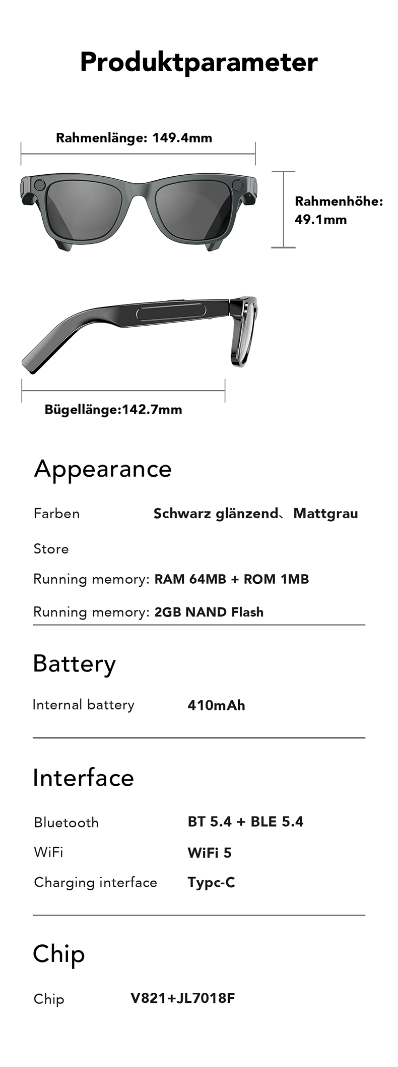 2025 Smart AI Brille – Übersetzen, Aufzeichnen, Verbinden
