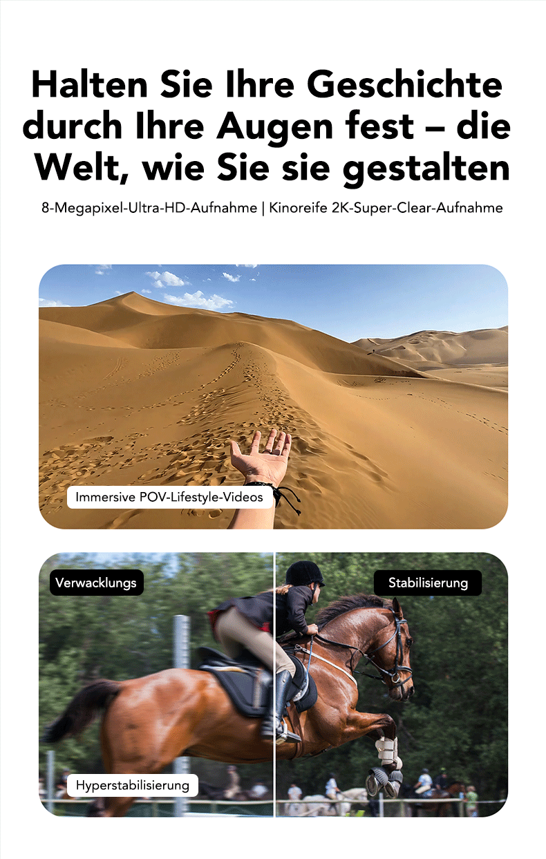 - Content Creation: Authentische POV-Aufnahmen ohne zusätzliches Setup
