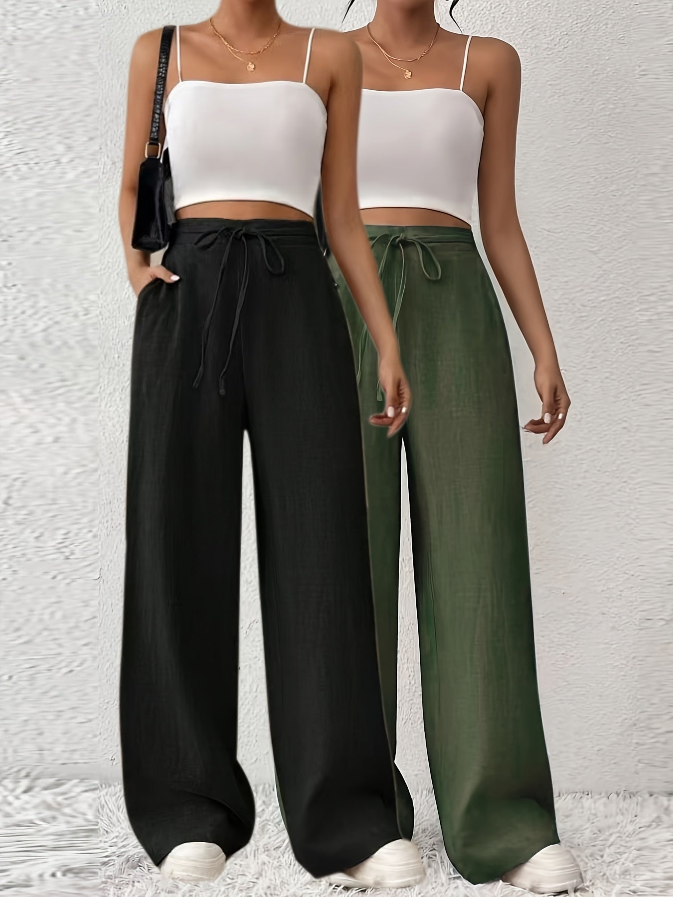2er-Set Damen Elegante Weite Stoffhosen mit Taschen – Gerade Beinform, Einfarbig, Bequem für Frühling/Sommer/Herbst, Casual & Business Look