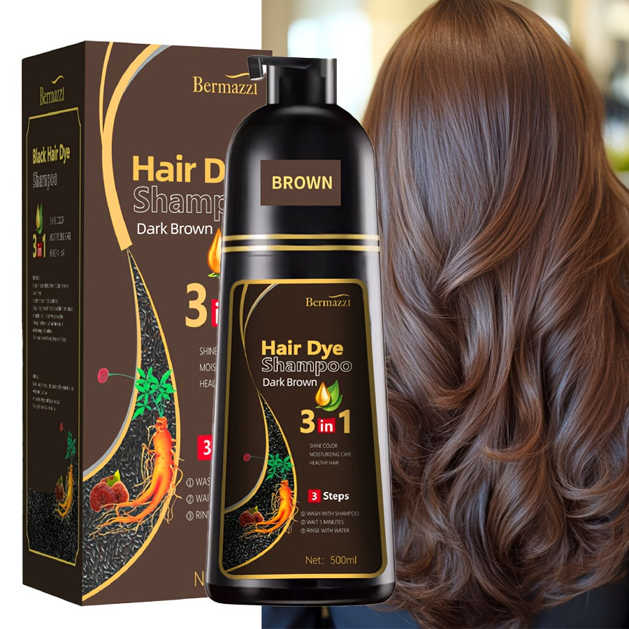 500ml Ginseng Haarfärbe-Shampoo – Pflanzliche Pflege, Grauabdeckung, langanhaltende Farbe, feuchtigkeitsspendend & sanft für Damen & Herren
