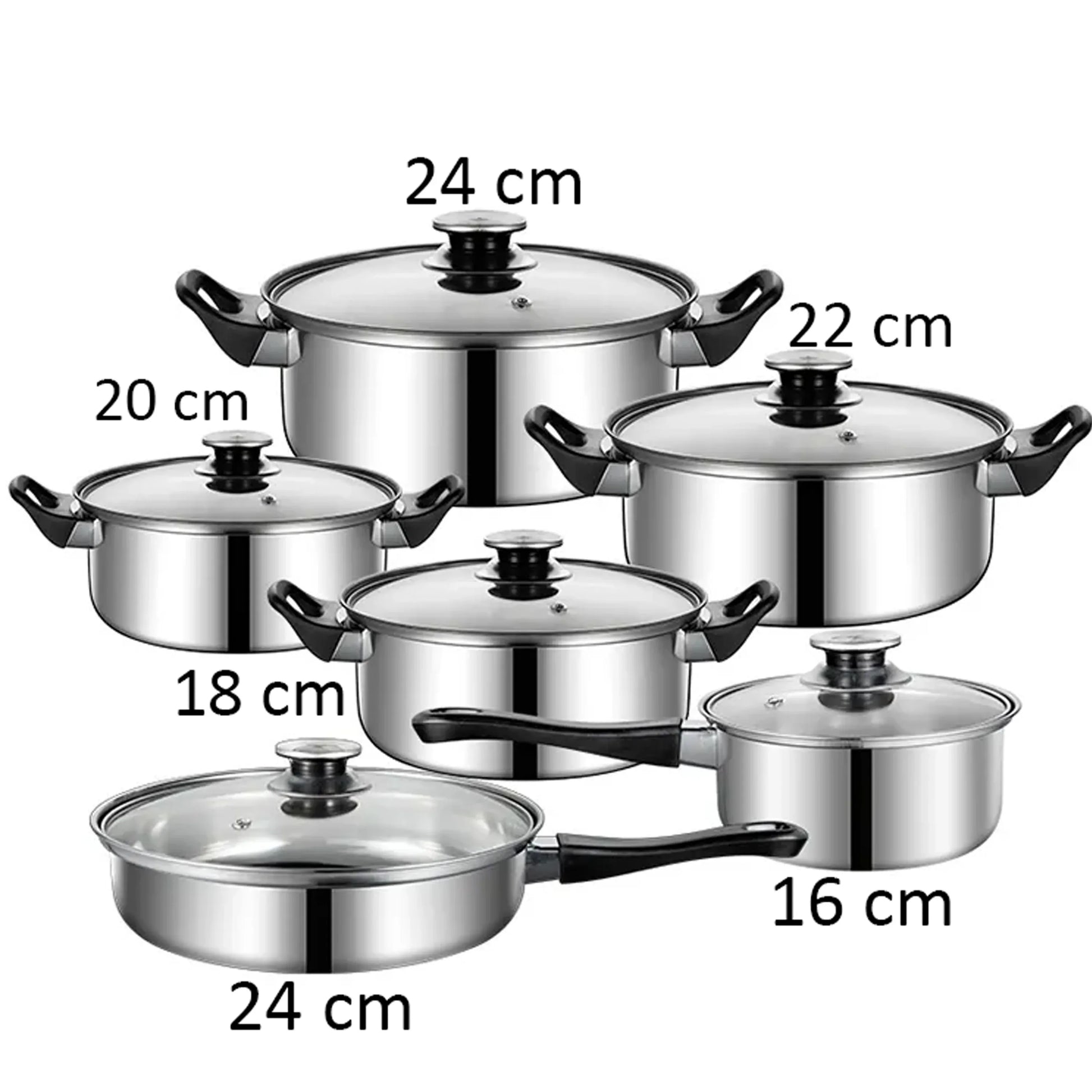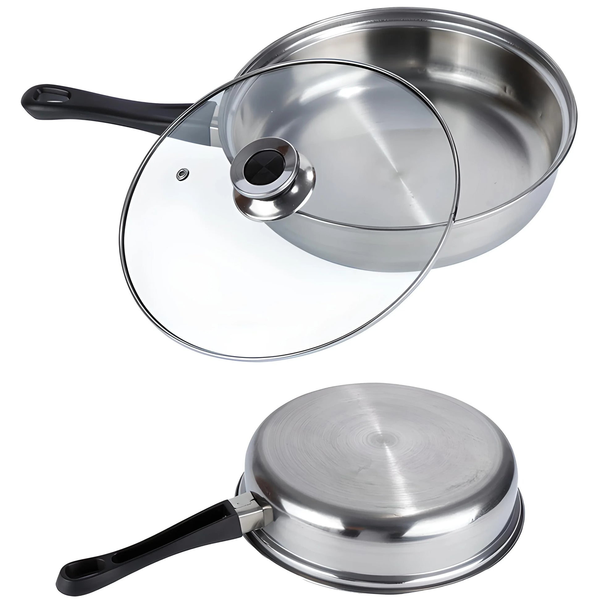 12-teiliges Edelstahl-Topfset mit Pfanne & Glasdeckeln – Für alle Herdarten
