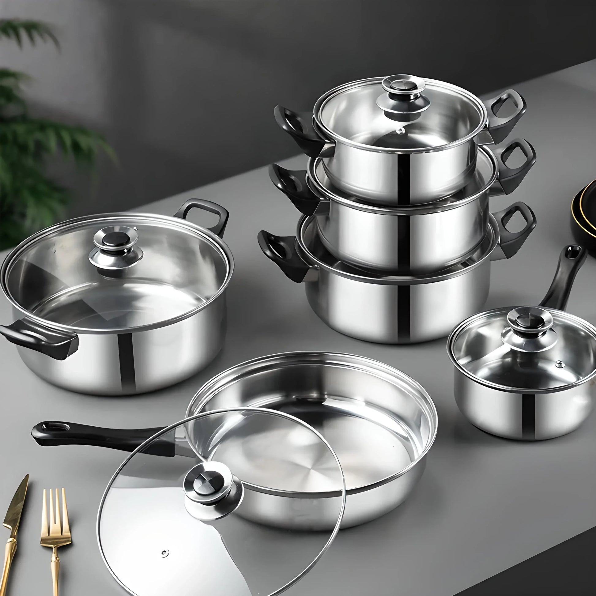 12-teiliges Edelstahl-Topfset – Vielseitig, Elegant & Langlebig