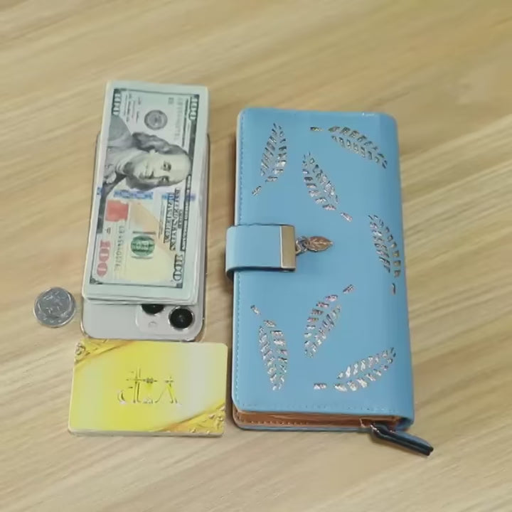 Frauen Brieftasche PU Leder Geldbörse Weibliche Lange Brieftasche Gold Hohl Blätter Beutel Handtasche Für Frauen Geldbörse Karte Halter Kupplung