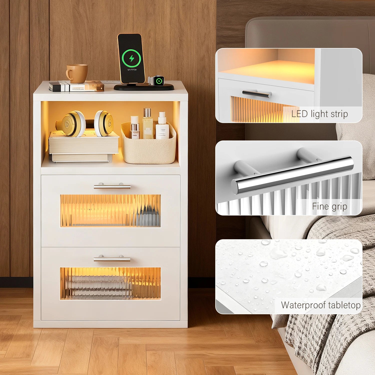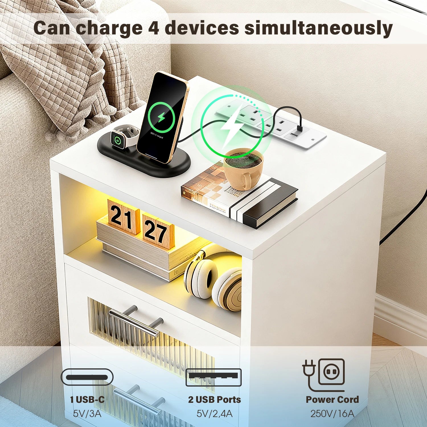 Moderner LED-Nachttisch mit integrierter Ladestation