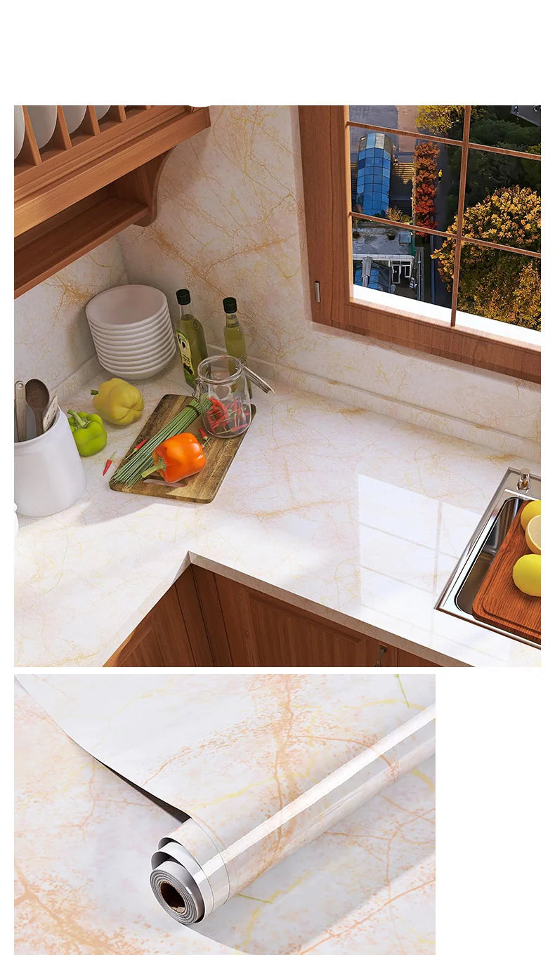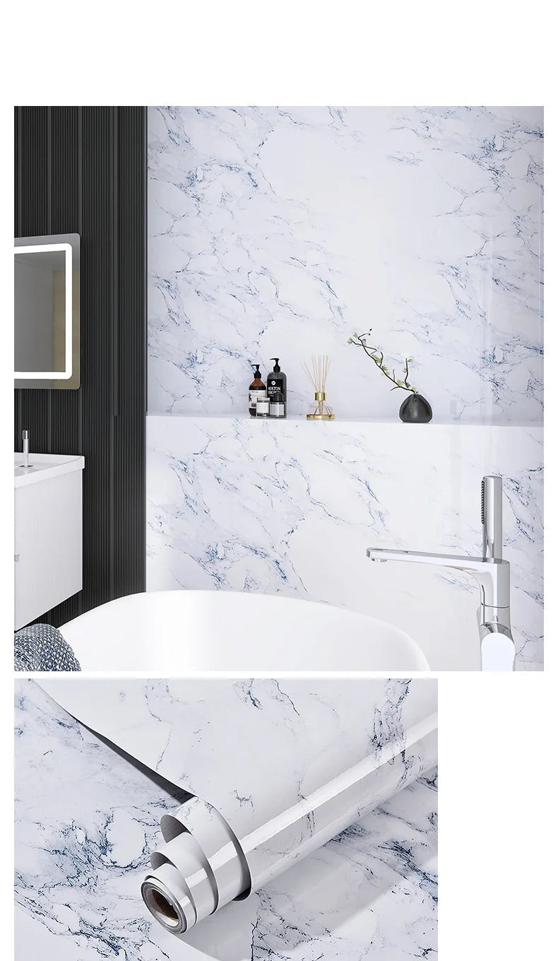 Wasserdichte Marmor Vinylfolie 60cm - Selbstklebende Tapete für Bad & Küche
