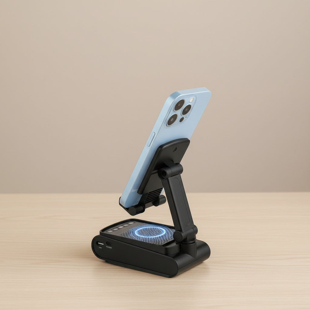 Stereo Wireless Lautsprecher mit Handyhalter – HD Surround Sound, Tastensteuerung, USB, ≤36V, wiederaufladbarer Polymer‑Akku – Geschenk für Männer & Frauen