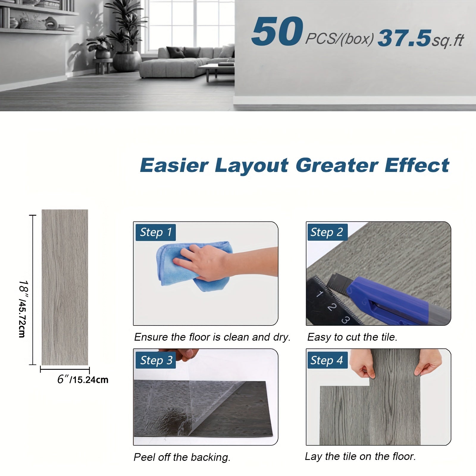 - Große Abdeckung: 50 Fliesen à 15×45 cm = ca. 3,5 m² Bodenfläche pro Packung