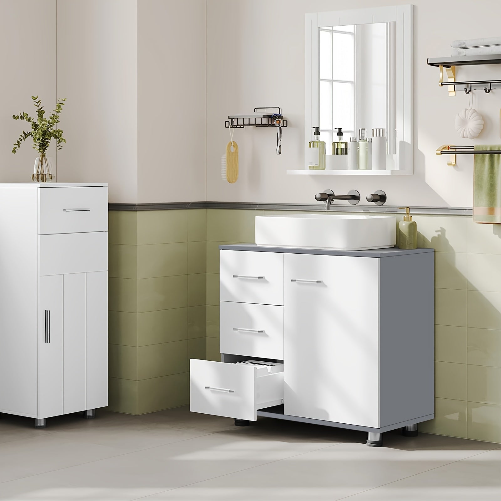 - Organisierte Badezimmer-Aufbewahrung